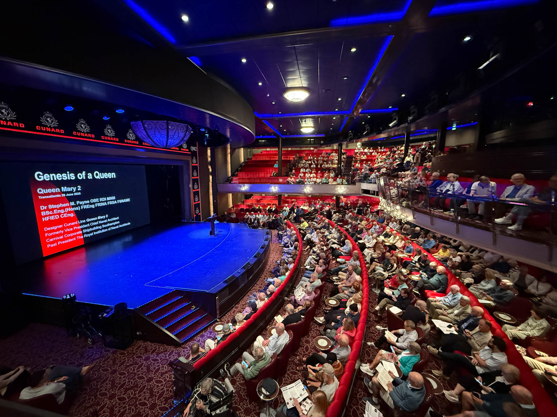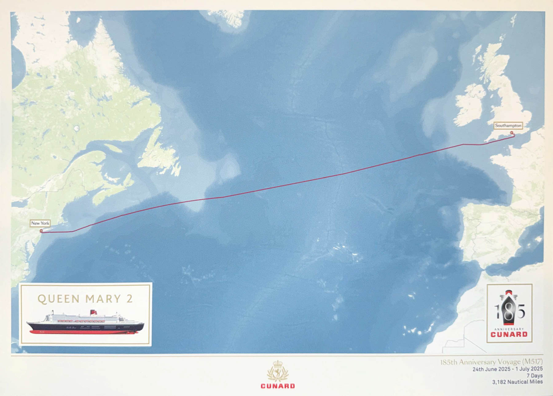 With a few short horn blasts, we were off on the main event: the 185th Anniversary Voyage of the Queen Mary 2. Southampton to New York on the finest Ocean-liner ever made (don’t you go calling it a cruise ship!). No, we weren’t celebrating some Cunard milestone, this adventure is to celebrate Elaine’s 70th in style!