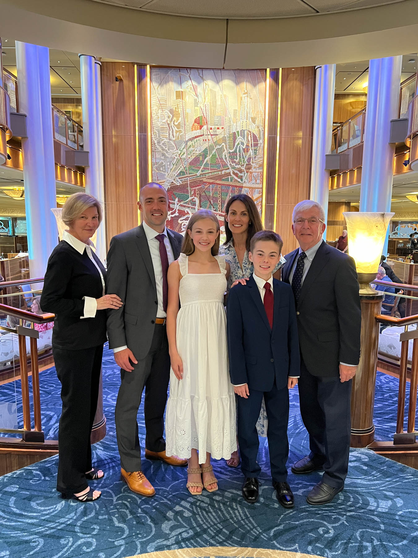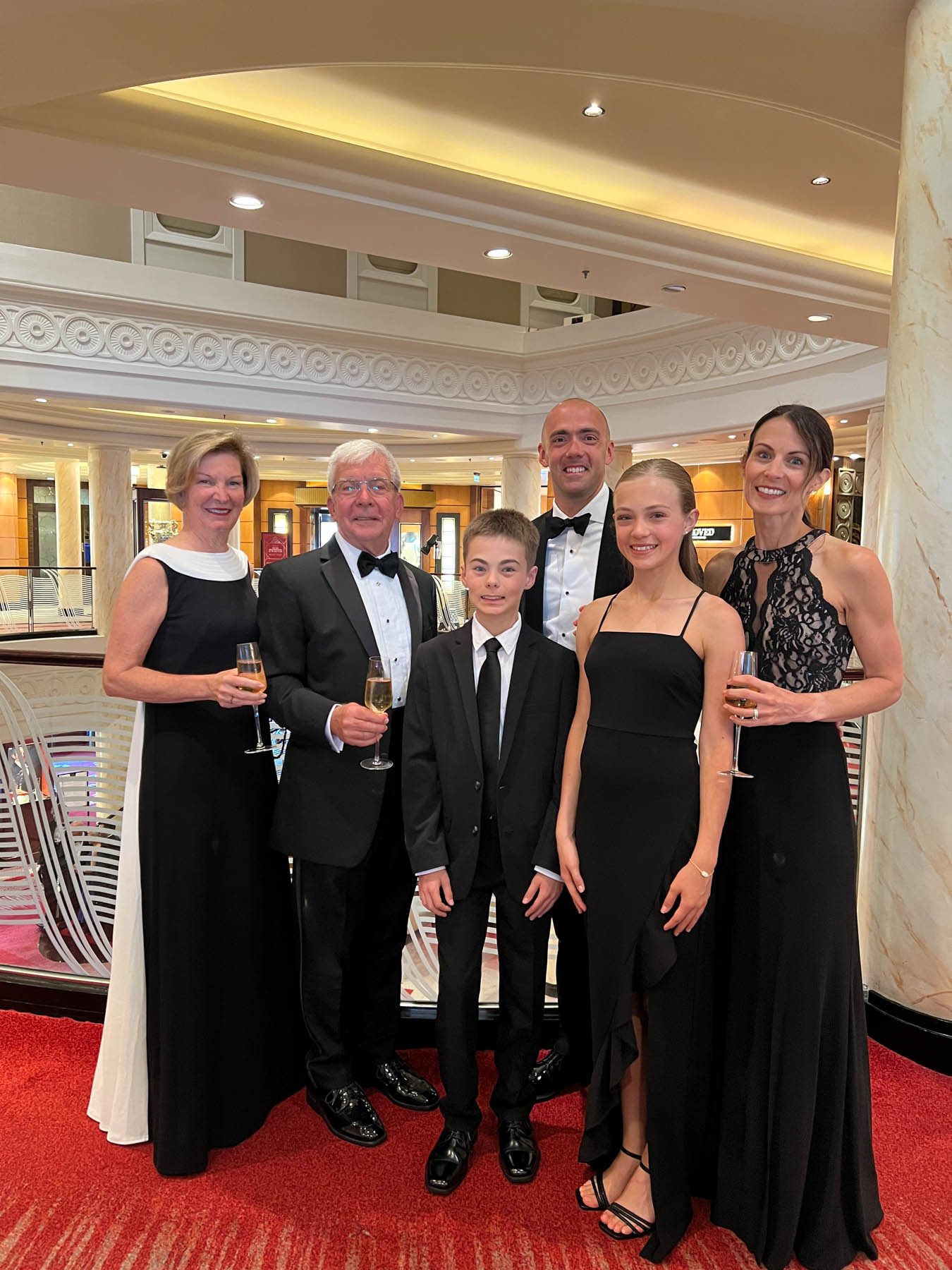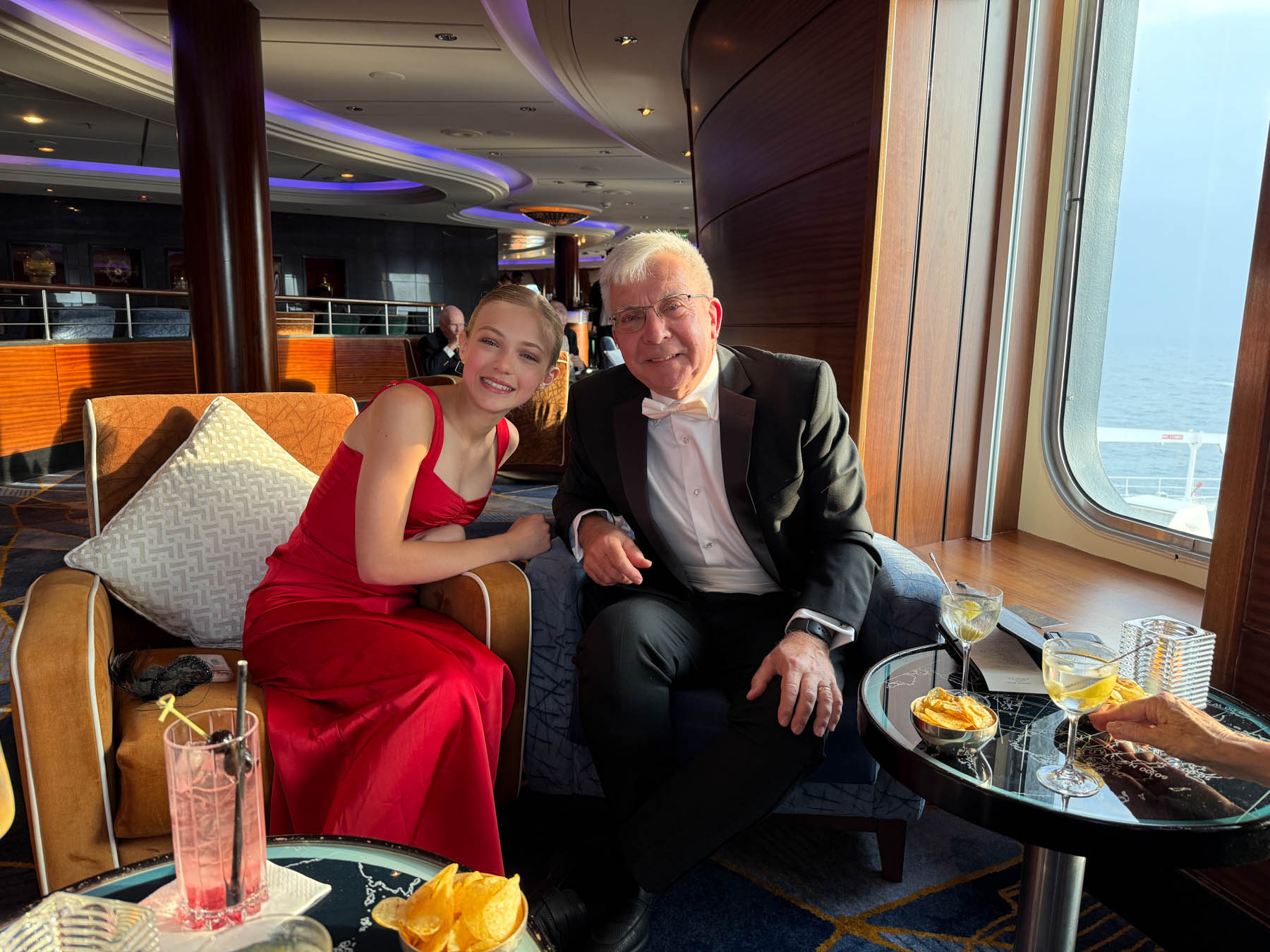 Sailing on the Queen Mary 2 is an all-in endeavor, complete with a few black tie nights. The second night at sea was the first of such events and everyone (including the kids) had a blast donning their finest and staying up until midnight. Grandpa and Lainey crushed it on the dance floor with moves so good, they melted the soles off Grandpa’s shoes!