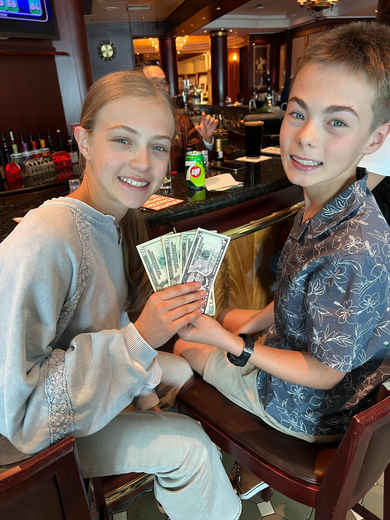 When not eating, we enjoyed the causal (albeit brisk) stroll on the deck or partook in one of the many activities on the ship. One of our favorites was the lecture on how the ocean liner was designed and built… given by the lead naval architect, Dr. Stephen Payne… who we happened to meet a few nights prior while having a cocktail. No big deal. I will begrudgingly admit that BINGO was a big hit… and lucrative… Mere, Sophia, and Will cleaned house while I shook my head in disbelief that we were playing BINGO. We had to be 30 years younger than anyone else in the room.