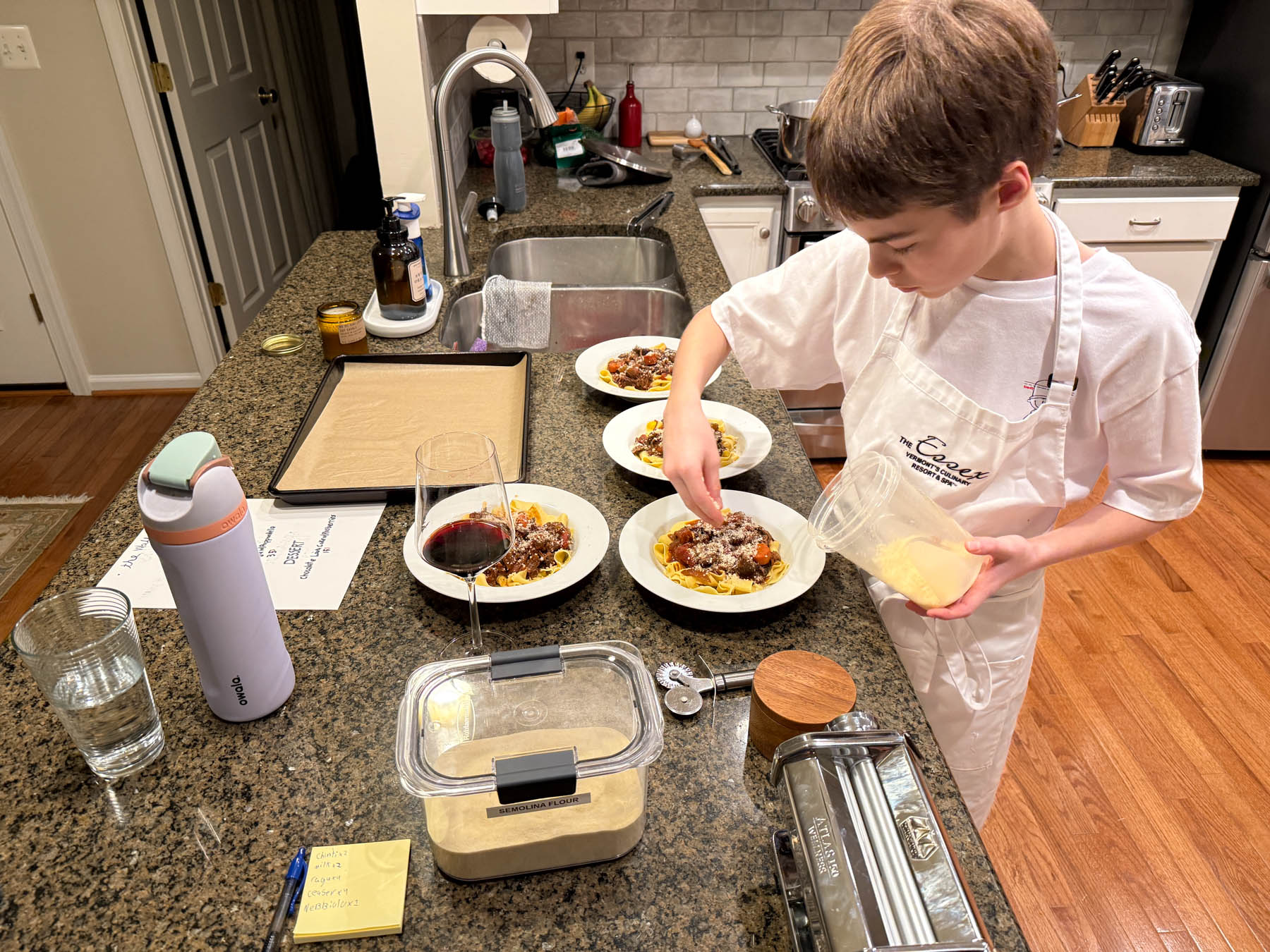Even the kids have gotten into cooking lately which has been great… especially when you get a paltry 8 inches of snow and the world stops turning for almost 10 days. Sophia turns out baked goods morning and night and Will is always eager to jump in on some big name dishes (that’s my wine glass not Will’s). Our barista doesn’t always hit home runs but I’d like to think he can make a decent cup of joe most days.