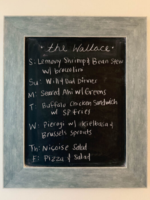 After celebrating NYE as a family in a Marriott somewhere in middle America, braving a blizzard, and getting some freezing cold midwest skiing in, we settled into a wonderfully slow-paced January. Central to our existence here is time spent at our favorite restaurant: the Wallace. Each week (give or take a few days), the chefs sit down to plan a menu that works with baseball, dance, the leftovers in the fridge, and the hankerings of the four of us. Once the menu is drafted, it gets thrown on the chalkboard and the real work begins.